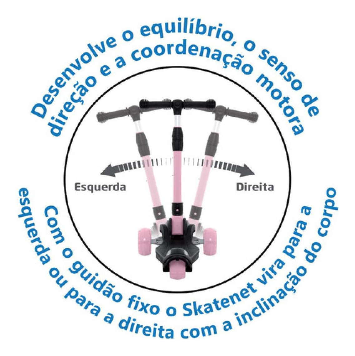 Patinete Infantil Bandeirante Skatenet Led Pro Dobrável Rosa Rosa-claro